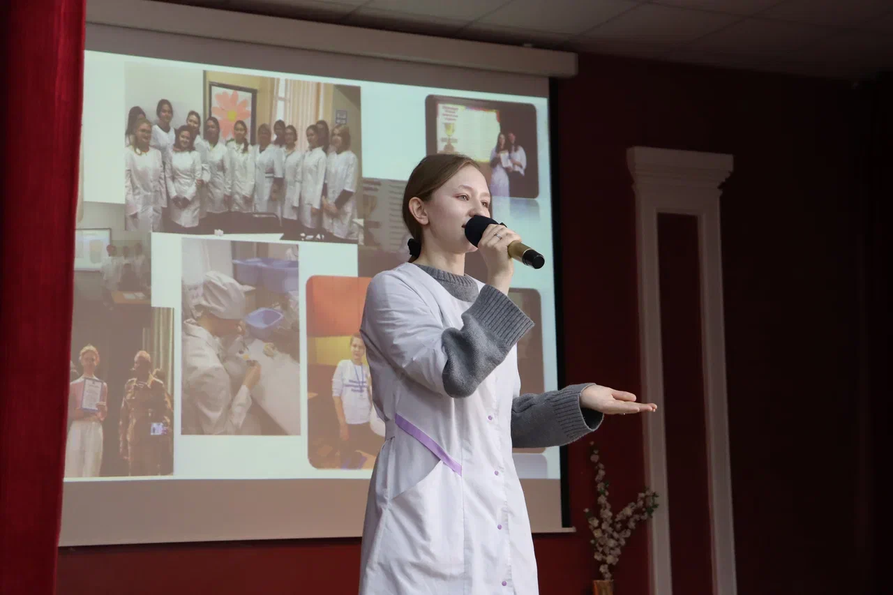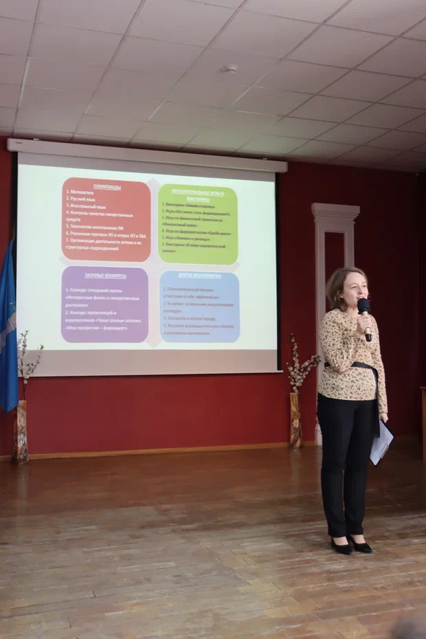 Перед будущими фармацевтами выступили: заместитель директора по учебно-воспитательной работе Шилова Е.Я., заведующий отделением «Фармация» Тимченко Е.В., преподаватель химии Хайретдинова Д.М., победитель регионального этапа чемпионата «Профессионалы 2025», обладательница медальона за профессионализм на итоговом межрегиональном этапе по компетенции «Фармацевтика» Юлия Солдатова. Они подчеркнули значимость профессии, пожелали студентам успехов и отметили, что все дни декады будут насыщены событиями: конкурсами, мастер-классами, интересными событиями.